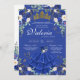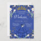Cette élégante invitation à la quinceanera florale présente des papillons (que vous pouvez déplacer ou retirer) et de belles fleurs bleues et blanches comme des roses et des hydrangées et des pivoines. Il y a une belle tiare dorée et tout le texte peut être customisé. Tout le texte peut être customisé pour votre occasion spéciale et d'autres variations de couleurs sont disponibles dans la boutique Jolie invitation.