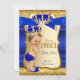 Invitation Royal Prince Baby shower Blue Gold Damask Brunette