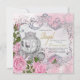 Invitation de fête d'anniversaire de princesse avec belle calèche royale blanche et jolies roses roses roses et parties scintillant argent scintille l'arrière - plan. Cette élégante invitation royale à la fête d'anniversaire est facilement customisée pour votre événement en ajoutant simplement vos détails dans le style et la couleur de police, et le libellé de votre choix. Il s'agit d'un design imprimé avec pas de vrais bijoux, rubans, parties scintillant, etc.