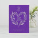 Donnez le ton pour votre grande journée avec cette superbe carte Save the Date avec un luxueux arrière - plan royal violet et élégant texte en argent doux. Le design du coeur de laurier symbolise l'amour et l'unité, parfaitement adapté aux célébrations mariages sophistiquées. Cette carte personnalisable vous permet de personnaliser les noms, les dates et les lieux, donnant à vos détails mariages une touche personnelle et royale. La combinaison du violet royal et de l'argent chatoyant offre un look intemporel et haut de gamme, parfait pour les mariages formels ou les couples à la recherche d'un design moderne mais classique.