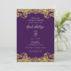 Invitation Royal Purple et dentelle dorée Élégante Baby Showe