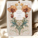 Entrez dans une ère d'élégance raffinée avec ce faire-part de mariage botanique royal, inspiré par le majestueux style Art Nouveau. Le design présente une exposition symétrique de beauté botanique, avec des fleurs riches aux tonalités de cuivre au centre de la scène, complétées par des pétales d'ivoire doux et des feuilles turquoises sereins. Les détails exquis sont encadrés par une délicate structure de lignes blush pâles qui évoquent les tourbillons sophistiqués du mouvement Art Nouveau, tandis que les bourgeons jaunes dorés apportent une touche de doux contraste à la composition globale. Cette invitation est un parfait hommage au passé, avec une palette de couleurs qui apporte une touche moderne à un design classique.