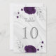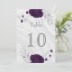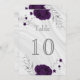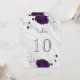élégant numéro de table personnalisable carte fleurs royales violet avec quelques feuilles gris argent marbre d'argent carte numéro de table