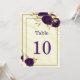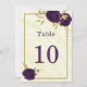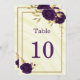 élégant personnalisable carte numéro de table royal fleurs violettes avec un peu d'or feuille or carte de numéro de table géométrique