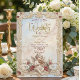 Transportez vos invités dans un royaume de romance classique avec ce design somptueux, présentant des motifs célestes et des détails ornés pour une occasion vraiment grandiose. Ce design présente une illustration à l'huile peinte numériquement d'un chérubin jouant du violon, sur un fond céleste de nuages bleus doux et de rayons de soleil. L'œuvre centrale est entourée d'une bordure complexe simulant l'aspect de la pierre sculptée et de rinceaux d'acanthe dorés. Des bouquets de tulipes et de roses rouges poussiéreuses et blanches accentuent les coins, créant un contraste riche avec la palette de crème et de bleu pastel. Il s'agit d'une image imprimée plate avec un effet de relief en faux or et une texture de pierre, et non une véritable feuille d'or, métal ou matériau sculpté.