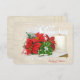 Bouquet de poinsettia et anneaux de mariage avec bougie et Sainte Bible dans un cadre de masque élégant pour RSVP de mariage de vacances.