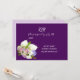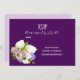 Une carte de réponse de mariage élégante et stylée présentant un bouquet de fleurs pastel et un thème violet royal. Le texte personnalisable est en écriture élégante sur un fond violet. Cette carte présente un bouquet groupé de fleurs de mariage comprenant des roses roses pâles, des hortensias violets, des lis calla blancs et des orchidées blanches. Un design simple et élégant pour votre jour spécial. Recherchez les invitations assorties dans le même style.