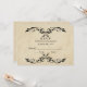 C'est une carte de réponse de style vintage avec des fioritures décoratives et un cadre. Cette conception élégante de carte postale de réponse de mariage inspirée du vintage. Regard texturé antique rustique avec design noir. Personnalisez le texte personnalisé avec votre date limite de réponse et l'adresse de réponse au dos de la carte.