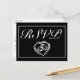 Carte de réponse RSVP pour votre célébration. Mariage, douches ou autres occasions. Design minimaliste moderne noir et blanc élégant avec un cadre noir fin.