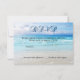 Carton d'invitation RSVP élégant pour un mariage sur la plage ou une destination, avec une peinture colorée de la plage. Le texte stylisé RSVP sur le devant est une image séparée et peut être supprimé si vous préférez un texte personnalisé. Vous pouvez personnaliser tous les textes, changer les polices et plus encore. Pour toutes les options, choisissez "personnaliser". Cette carte RSVP fait partie d'une collection de mariage avec des produits assortis.