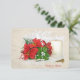 Bouquet de poinsettias et anneaux de mariage avec bougie et Sainte Bible dans un cadre masqué élégant pour RSVP de mariage de vacances.