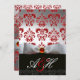 Invitation RUBAN ARGENTÉ ROUGE & MONOGRAMME EN DAMAS NOIR Rub