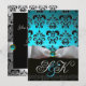 INVITATION RUBAN BLANC AQUA BLEU NOIR DAMAS MONOGRAMME