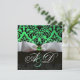 Élégant, chic, unique damas Art Nouveau avec une pierre précieuse verte 3D vibrante, facilement personnalisable avec votre texte et vos initiales pour une cérémonie de mariage, une annonce de nuptial, un sweet 16, une carte de table, une carte "save-the-date", un remerciement, des baby showers, des bridal showers, des fêtes d'anniversaire de quinceanera, un Bat Mitzvah, des fêtes de fiançailles romantiques, Noël, les fêtes, le bureau, les réunions de famille, les célébrations du nouvel an, les anniversaires, les rassemblements, les remises de diplômes scolaires, un concert, une audition ou presque n'importe quel événement que vous souhaitez !