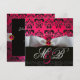 INVITATION RUBAN BLANC ROSE ROUGE RUBIS NOIR DAMAS MONOGRAMM