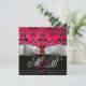 INVITATION RUBAN BLANC ROSE ROUGE RUBIS NOIR DAMASSÉ MONOGRA