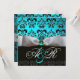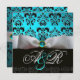 INVITATION RUBAN BLANC TURQUOISE NOIR DAMAS MONOGRAMME