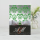 Invitation RUBAN BLANC VERT & MONOGRAMME DAMAS NOIR Or