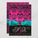 INVITATION RUBAN BLEU FUCHSIA ROSE NOIR DAMAS MONOGRAMME