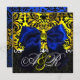 INVITATION RUBAN BLEU OR JAUNE NOIR DAMAS MONOGRAMME