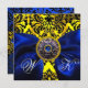 INVITATION RUBAN BLEU OR JAUNE NOIR DAMAS MONOGRAMME