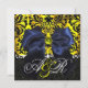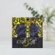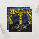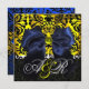 INVITATION RUBAN BLEU OR JAUNE NOIR DAMAS MONOGRAMME