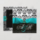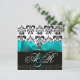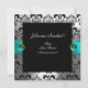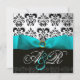 INVITATION RUBAN BLEU TURQUOISE BLANC NOIR DAMASSÉ MONOGRAMM