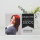 Célébrez votre diplômé avec style grâce à ce faire-part de remise de diplôme élégant aux couleurs noires de l'école avec ruban. Avec un accent de ruban noir audacieux et un texte personnalisable de l'année « Promotion de », ce design vous permet de mettre en valeur la photo de votre diplômé au centre. La couleur de fond peut être facilement mise à jour pour correspondre aux couleurs de votre école - il suffit de cliquer sur « Personnaliser » et de sélectionner « Modifier l'arrière-plan » pour un ajustement parfait.