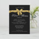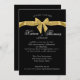 Invitation élégante noire avec motif de nœud papillon doré pour la célébration du cinquantième anniversaire. Invitation formelle noire avec texte blanc et nœud papillon. Toutes les parties de cette invitation sont imprimées, aucun ruban réel n'est attaché.