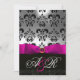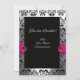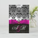 INVITATION RUBAN FUCHSIA BLANC NOIR DAMAS MONOGRAMME