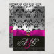 INVITATION RUBAN FUCHSIA BLANC NOIR DAMAS MONOGRAMME