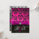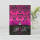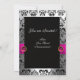 INVITATION RUBAN FUCHSIA BLANC NOIR MONOGRAMME DAMAS