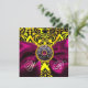 INVITATION RUBAN FUCHSIA OR JAUNE NOIR DAMAS MONOGRAMME