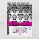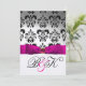 INVITATION RUBAN FUCHSIA ROSE MONOGRAMME DAMASSÉE BLANC NOIR