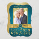 Cette élégante invitation photo pour noces d'or de mariage teinte bleu sarcelle et or avec des volutes comporte un ruban doré IMPRIMÉ et un médaillon sarcelle et or à l'aspect faux-gravé IMPRIMÉ. Elle comprend une zone de modèle pour que vous puissiez télécharger votre propre photo numérique. Vous pouvez supprimer le texte stylisé en écriture cursive "Noces de mariage" ou "50 ans". Tout le texte est personnalisable, ainsi que les choix de papier. AUSSI, si vous changez de police ou de taille de police, votre texte risque de ne plus convenir correctement. Zazzle ne modifiera rien pour les fautes de frappe, l'alignement ou autre, et je ne verrai pas votre invitation. Tout sera imprimé tel qu'il apparaît sur votre écran. Si vous avez besoin d'aide pour l'invitation, veuillez me contacter AVANT de la commander. Cette invitation est conçue pour s'adapter à la carte de forme incurvée de taille 5x7. Si vous changez de taille ou de forme, le design ne conviendra plus correctement, alors si vous souhaitez une taille différente,
