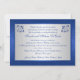 Cette élégante invitation de 40e anniversaire de mariage de couleur bleu royal et gris argenté avec motif floral comporte un ruban avec l'inscription "PRINTED ON" avec une paire de bijoux en diamant "PRINTED", et des coeurs joints en FAUX brillant ainsi qu'une bordure à motif damassé en FAUX gaufrage qui correspond à la carte de réponse RSVP ci-dessous. AUSSI, si vous changez de police ou de taille de police, votre texte risque de ne plus convenir correctement. Zazzle ne modifiera rien pour les fautes de frappe, l'alignement ou autre, et je ne verrai pas votre invitation. Tout sera imprimé tel qu'il apparaît sur votre moniteur. Si vous avez besoin d'aide pour l'invitation, veuillez me contacter AVANT de la commander. Cette invitation est conçue pour s'adapter à une carte de format 3,5 x 5. Si vous choisissez une autre taille, le design ne conviendra plus correctement, donc si vous
