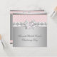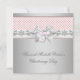 Fond élégant rose et blanc à petits motifs avec superposition de bijou argenté et nœud avec croix rose pendante au centre, invitation pour baptême et christening de bébé fille. Ajoutez vos coordonnées au recto et au verso de cette jolie invitation de christening rose et grise en ajoutant les détails de votre événement, le style de police, la taille et la couleur de la police, ainsi que le libellé. Veuillez noter que tous les modèles d'invitation que vous trouverez sur Zazzle sont des graphiques imprimés sur du papier plat, sans véritables bijoux, nœuds, relief, gaufrage ou pièces ajoutées.