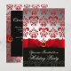 Invitation RUBAN ROUGE BLANC NOIR DAMAS FÊTE DE FÊTES Rubis