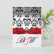 INVITATION RUBAN ROUGE BLANC NOIR DAMASQUE MONOGRAMME
