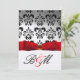INVITATION RUBAN ROUGE OR NOIR DAMAS MONOGRAMME