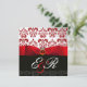 INVITATION RUBAN ROUGE RUBIS BLANC NOIR DAMAS MONOGRAMME