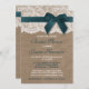 Invitation Ruban turquoise Sur Burlap & Fête des mariées Dent