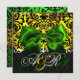 INVITATION RUBAN VERT OR JAUNE NOIR DAMAS MONOGRAMME