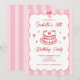 Célébrez avec charme et féminité grâce à cette invitation d'anniversaire rose à rayures, dessinée à la main dans un style vintage, inspirée de l'esthétique coquette si populaire. Avec son illustration délicate de gâteau vintage orné de rubans et d'un numéro d'anniversaire personnalisable, cette invitation allie avec élégance la nostalgie ludique et la tendance moderne.