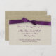 Le look de burlap avec un joli ruban satiné est imprimé sur cette élégante carte de réception de style champêtre pour correspondre à nos invitations. Toutes les parties de cette invitation sont imprimées. Il n'y a pas de véritable ruban ni de burlap attaché.