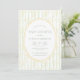 Des rubans jaunes doux et des rayures vertes entourent les polices dainty dans un cadre vintage jaune. Le jaune pastel et le vert créent un cadre doux. Aussi doux que possible. Une invitation parfaite pour un événement parfait. Style neutre pour le genre. Satisfaction 100% client chez Zazzle tous les jours.