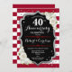 Invitation de fête d'anniversaire de mariage de 40 ans Ruby rouge. Élégante carte d'invitation rouge, noire et blanche avec faux argent scintillant. Caractéristiques rayures élégantes, police de caractères script et roses blanches. Parfait pour une célébration de 40 ans de mariage.