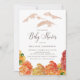 Invités Invitations avec cette invitation rustique de baby shower d'automne. Il présente des illustrations aquarelle d'un paysage de chute avec des orangers, des verts et des rouges. Personnalisez en ajoutant les noms, la date, l'heure et d'autres détails. Cette invitation à la forêt d'automne est parfaite pour les baby showers d'automne.