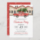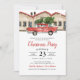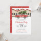 des amis Invitations pour fêter la saison avec ces invitations de fêtes rustiques. Le design présente une aquarelle illustrant un camion de Noël rouge avec un arbre de Noël, des maisons et du texte rouge. L'envers de cet invitation est rouge avec des flocons de neige aquarelle. Customisez cette élégante invitation avec votre type d'événement, ce qui la rend parfaite pour les fêtes de Noël, les événements d'entreprise, les cocktails de vacances.