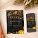 Belle orange rouille et bordeaux foncé automne fleurs et bordures citrouilles avec cordes de lumières scintillantes dorées sur un arrière - plan de grange brun foncé pour une élégante invitation de mariage avec une écriture manuscrite manuscrite script de typographie or. ++++++++++ Facile à personnaliser avec vos détails ! Convient à l'automne traditionnel rustique ferme de campagne mariages de jardin extérieur de la ferme de l'automne.